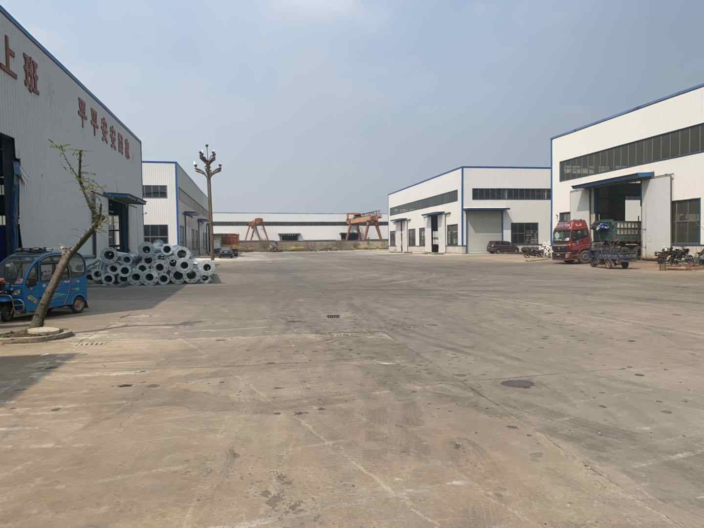 高郵市捷通交通器材有限公司位于揚州北郊送橋開發區。公司占面積20000平方米,建筑面積12000平方米。   二千年以來,以鋼代木和水泥桿已風行世界,我國各地也紛紛建立錐桿廠,以漂亮的錐桿代替了過去的和水泥桿,裝點了一條條的公路和街道,美化了環境,照亮了人間成為各地新建和改造道路的不可缺少的配套設施。路燈的千變萬化,已成為各地路燈生產商和建設者的追求。   但現有的路燈,均在燈頭及底座上變化;燈頭款式雖多,但在燈桿上均無變化,只有光身錐桿和光身直桿,十分單一。以我公司多年對管材深加工設備的認識,加上全公司員工的不懈努力,成功設計制造了花式錐桿的機械設備,生產出竹節、六花